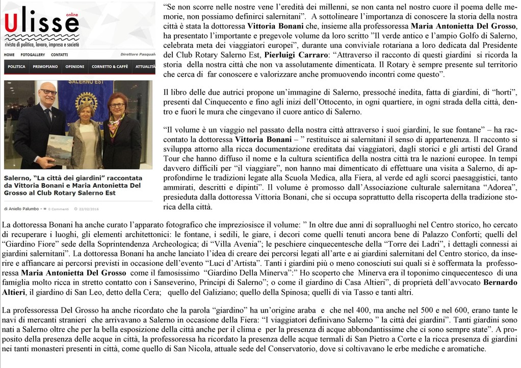 PRESENTAZIONE DEL LIBROIl verde antico e l'ampio Golfo di Salerno, celebrata meta dei viaggiatori europei. Cinquecento-Primo OttocentoGiovedi, 18 febbraio 2016Rotary - Grand Hotel Salerno